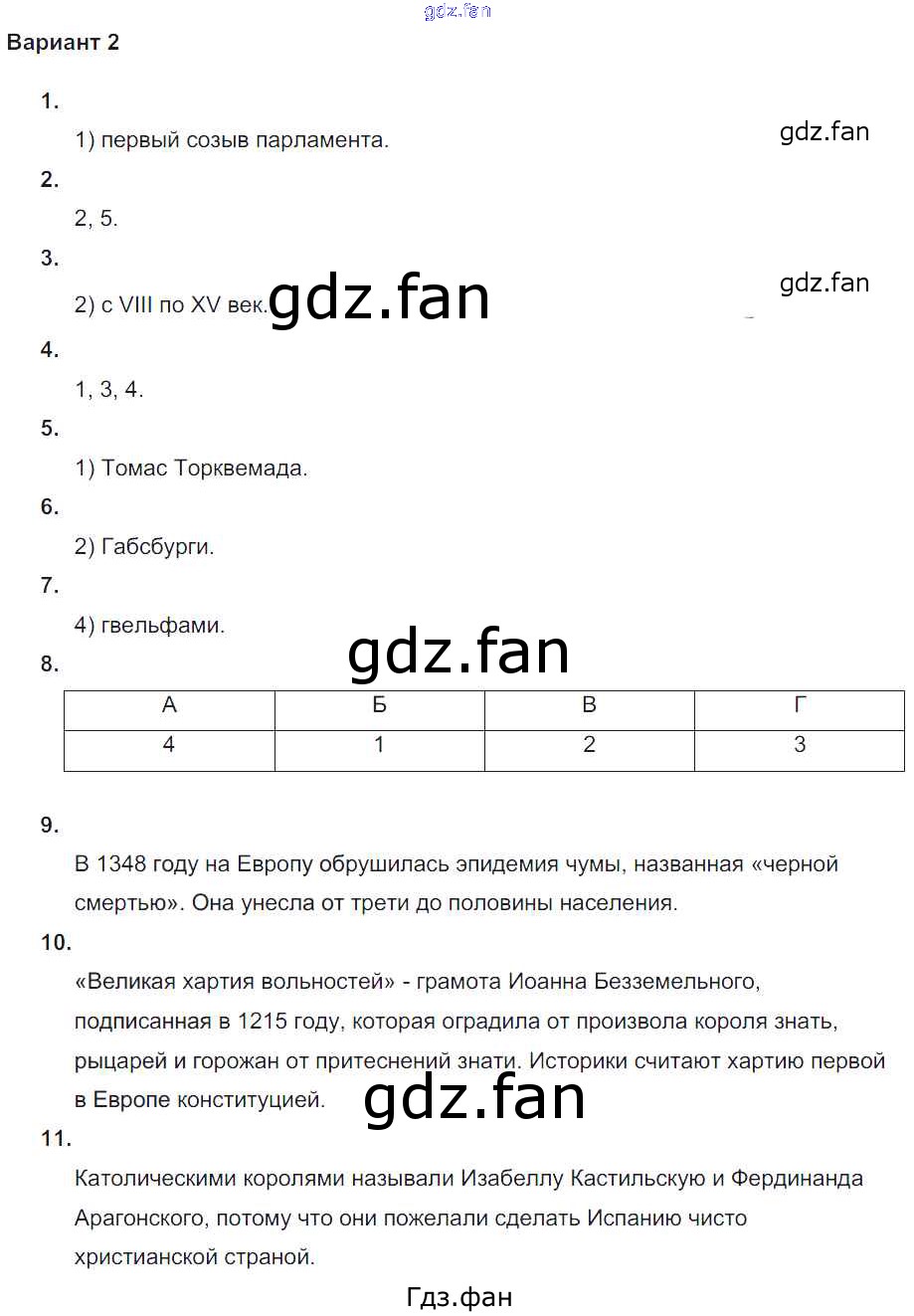 Проверка домашнего задания всегда занимает большое количество времени. На помощь приходит ГДЗ фан по Истории шестого класса. Здесь собраны популярные ответы на Вариант 2 (стр. 73-74) Всеобщая история. История Средних веков 6 класс проверочные и контрольные работы Крючкова Е.А.
