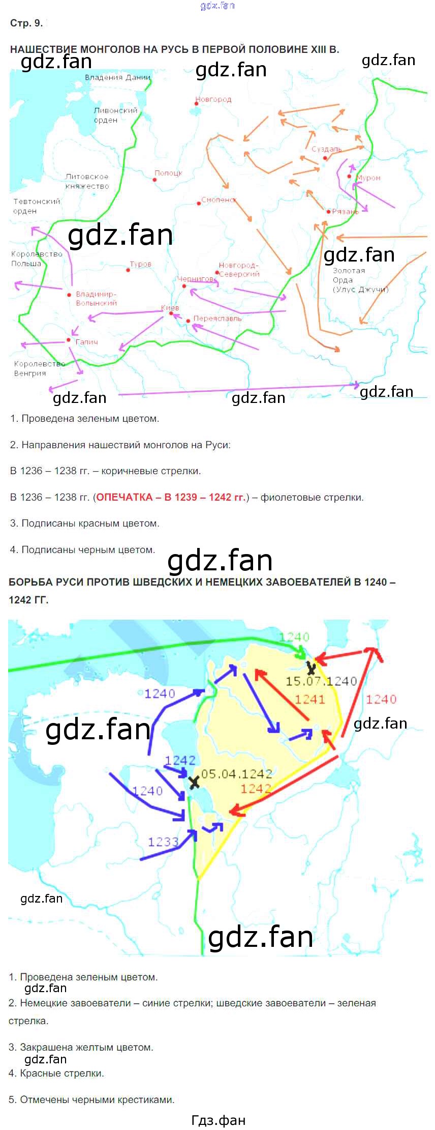 Проверка домашнего задания всегда занимает большое количество времени. На помощь приходит ГДЗ фан по Истории шестого класса. Здесь собраны популярные ответы на 9 (Нашествие монголов на Русь в первой половине 13 в.) История России с древнейших времен до начала XVI века 6 класс Контурные карты Пчелов Е.В.