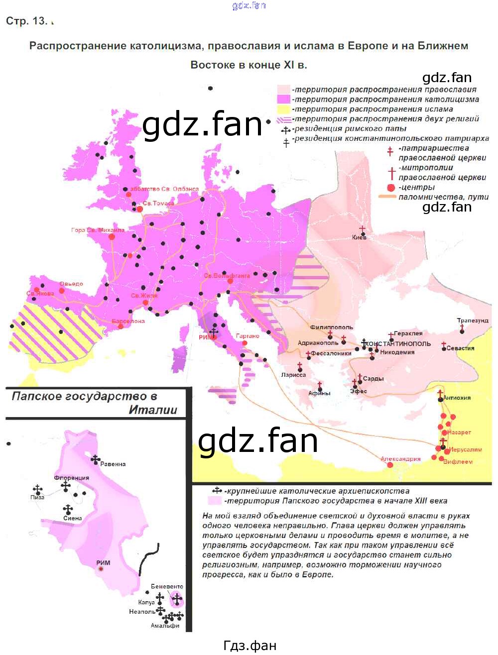 Проверка домашнего задания всегда занимает большое количество времени. На помощь приходит ГДЗ фан по Истории шестого класса. Здесь собраны популярные ответы на 13 (Распространение католицизма, православия и ислама в Европе и на Ближнем Востоке в конце 11 в.) История Средних веков 6 класс контурные карты Тороп В.В.