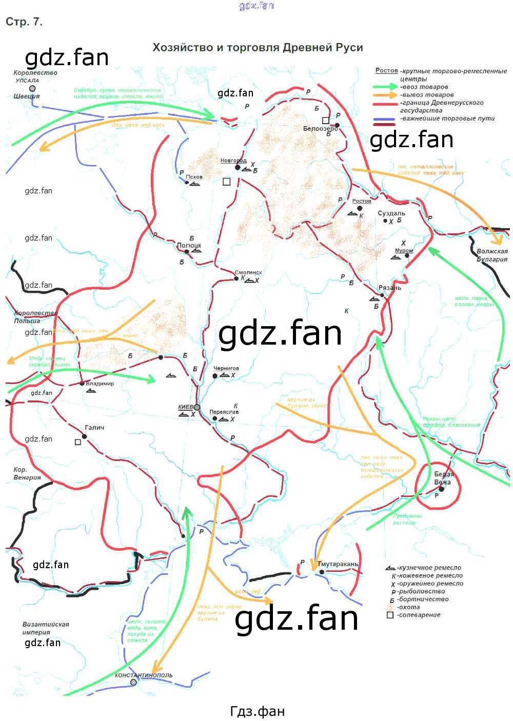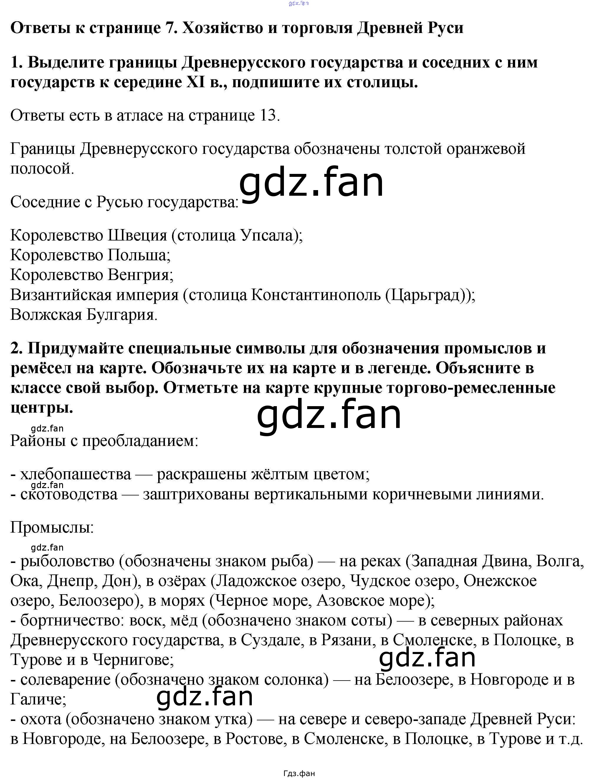 Проверка домашнего задания всегда занимает большое количество времени. На помощь приходит ГДЗ фан по Истории шестого класса. Здесь собраны популярные ответы на 7 (Хозяйство и торговля Древней Руси) История России. С древнейших времен до XVI века 6 класс контурные карты Тороп В.В.