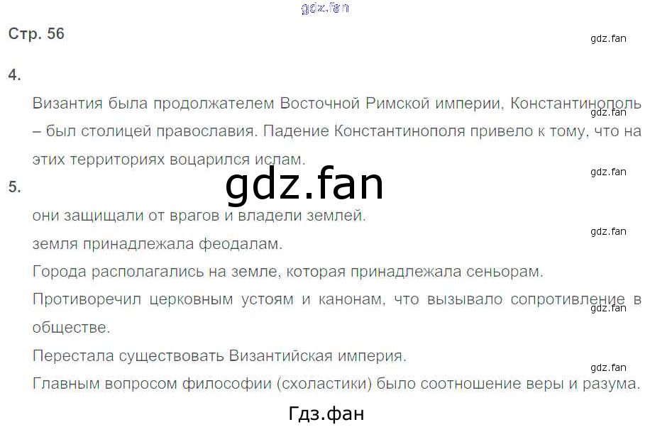 Проверка домашнего задания всегда занимает большое количество времени. На помощь приходит ГДЗ фан по Истории шестого класса. Здесь собраны популярные ответы на 56 (№ 4, 5) История Средних веков 6 класс тетрадь-тренажер Ведюшкин В.А.