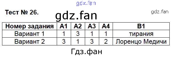 Проверка домашнего задания всегда занимает большое количество времени. На помощь приходит ГДЗ фан по Истории шестого класса. Здесь собраны популярные ответы на Тест №26 (стр. 64-65) Всеобщая история. История средних веков 6 класс контрольно-измерительные материалы (КИМ) Волкова К.В.