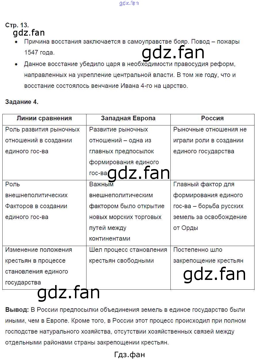 Проверка домашнего задания всегда занимает большое количество времени. На помощь приходит ГДЗ фан по Истории седьмого класса. Здесь собраны популярные ответы на 13 (№ 4) История России 7 класс контрольные работы Артасов И.А.