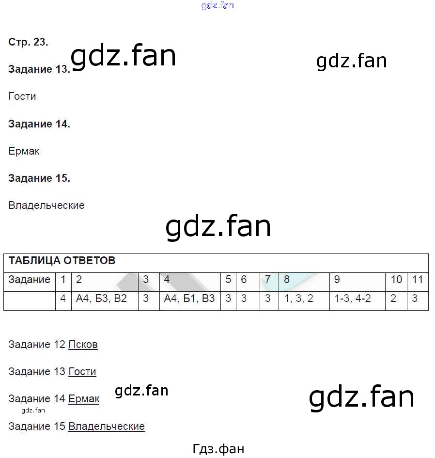 Проверка домашнего задания всегда занимает большое количество времени. На помощь приходит ГДЗ фан по Истории седьмого класса. Здесь собраны популярные ответы на 23 (№ 13, 14, 15) История России 7 класс контрольные работы Артасов И.А.