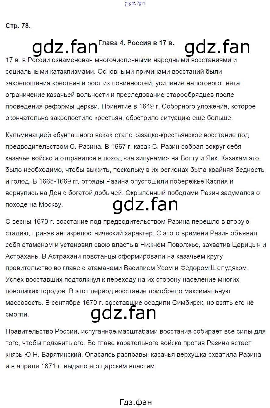 Проверка домашнего задания всегда занимает большое количество времени. На помощь приходит ГДЗ фан по Истории седьмого класса. Здесь собраны популярные ответы на 78 (Глава 4. Россия в XVII в.) История России 7 класс контрольные работы Артасов И.А.
