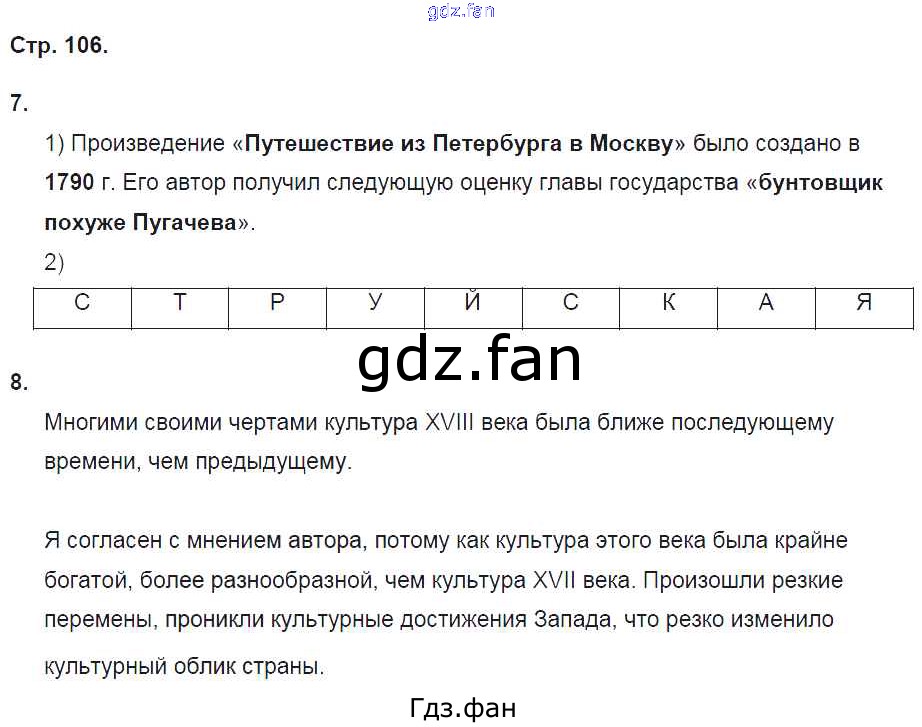 Проверка домашнего задания всегда занимает большое количество времени. На помощь приходит ГДЗ фан по Истории седьмого класса. Здесь собраны популярные ответы на 106 (№ 7, 8) История России 7 класс рабочая тетрадь Баранов П.А.