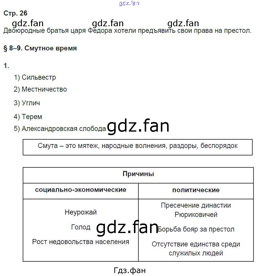 Проверка домашнего задания всегда занимает большое количество времени. На помощь приходит ГДЗ фан по Истории седьмого класса. Здесь собраны популярные ответы на 26 (§8-9. Смутное время № 1) История России 7 класс рабочая тетрадь Баранов П.А.