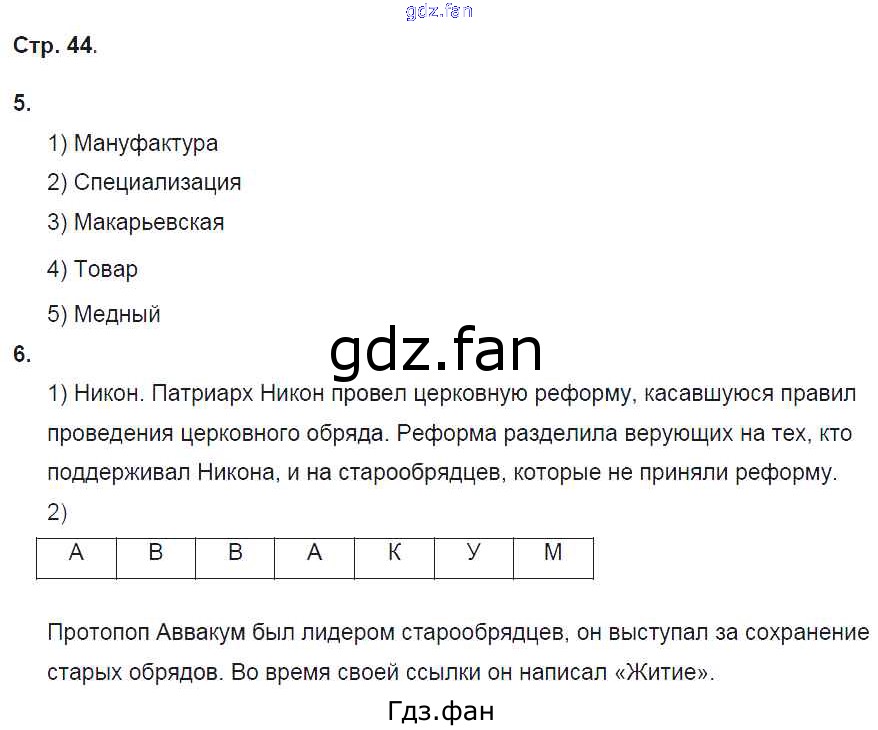 Проверка домашнего задания всегда занимает большое количество времени. На помощь приходит ГДЗ фан по Истории седьмого класса. Здесь собраны популярные ответы на 44 (№ 5, 6) История России 7 класс рабочая тетрадь Баранов П.А.