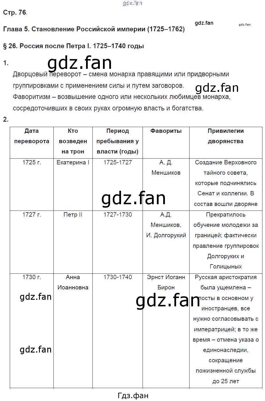 Проверка домашнего задания всегда занимает большое количество времени. На помощь приходит ГДЗ фан по Истории седьмого класса. Здесь собраны популярные ответы на 76 (§26. Россия после Петра I. 1725-1740 гг. № 1, 2) История России 7 класс рабочая тетрадь Баранов П.А.