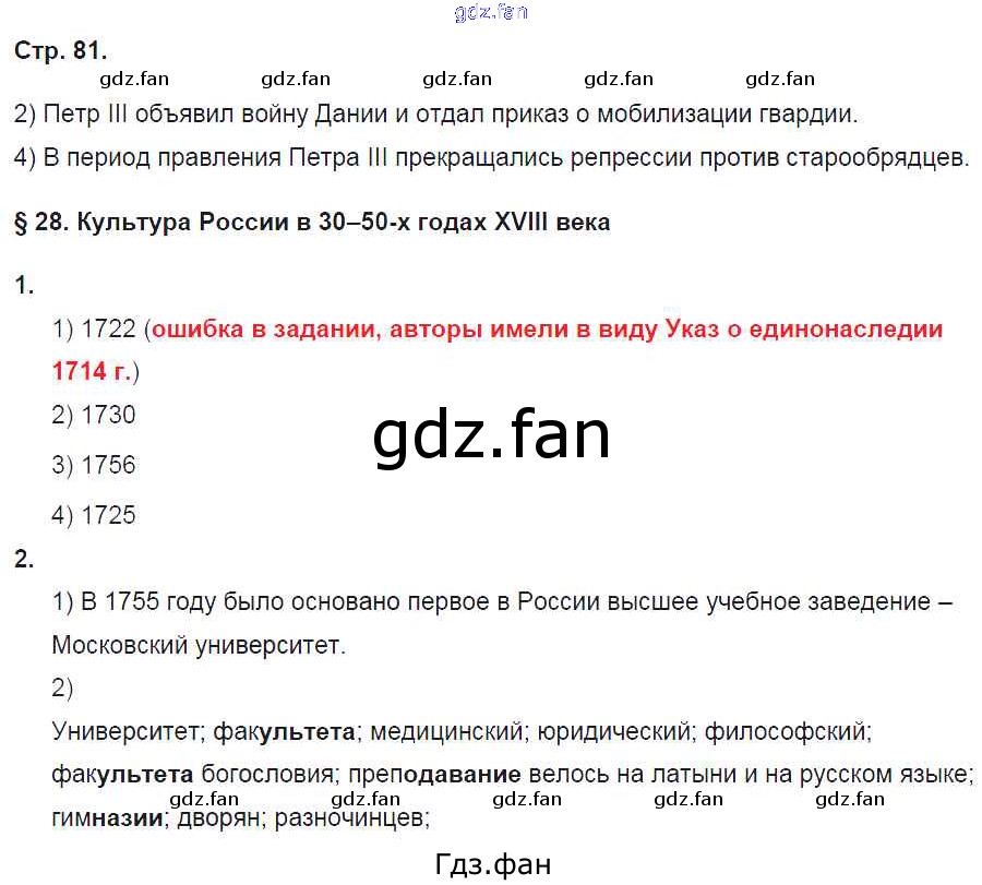 Проверка домашнего задания всегда занимает большое количество времени. На помощь приходит ГДЗ фан по Истории седьмого класса. Здесь собраны популярные ответы на 81 (§28. Культура России в 30-50-х годах XVIII века № 1, 2) История России 7 класс рабочая тетрадь Баранов П.А.