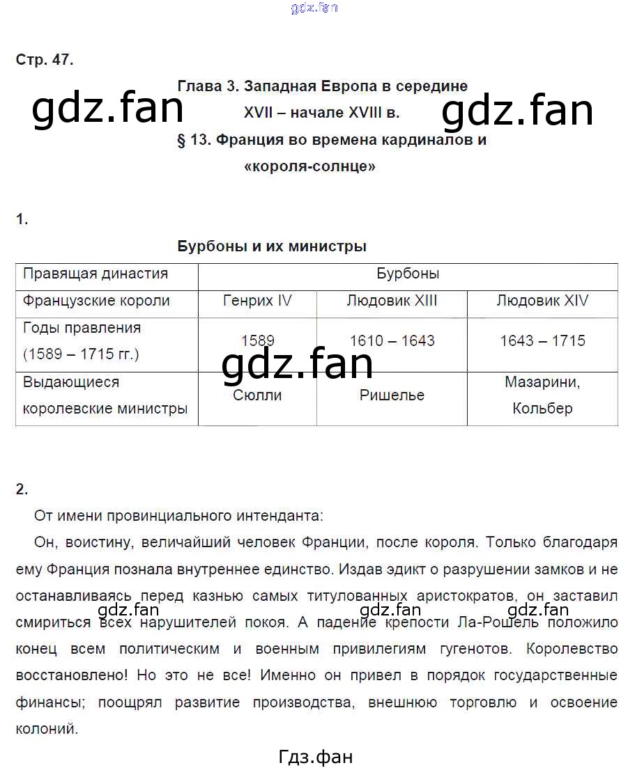 Проверка домашнего задания всегда занимает большое количество времени. На помощь приходит ГДЗ фан по Истории седьмого класса. Здесь собраны популярные ответы на 47 (§13 № 1, 2) История 7 класс рабочая тетрадь Баранов П.А.