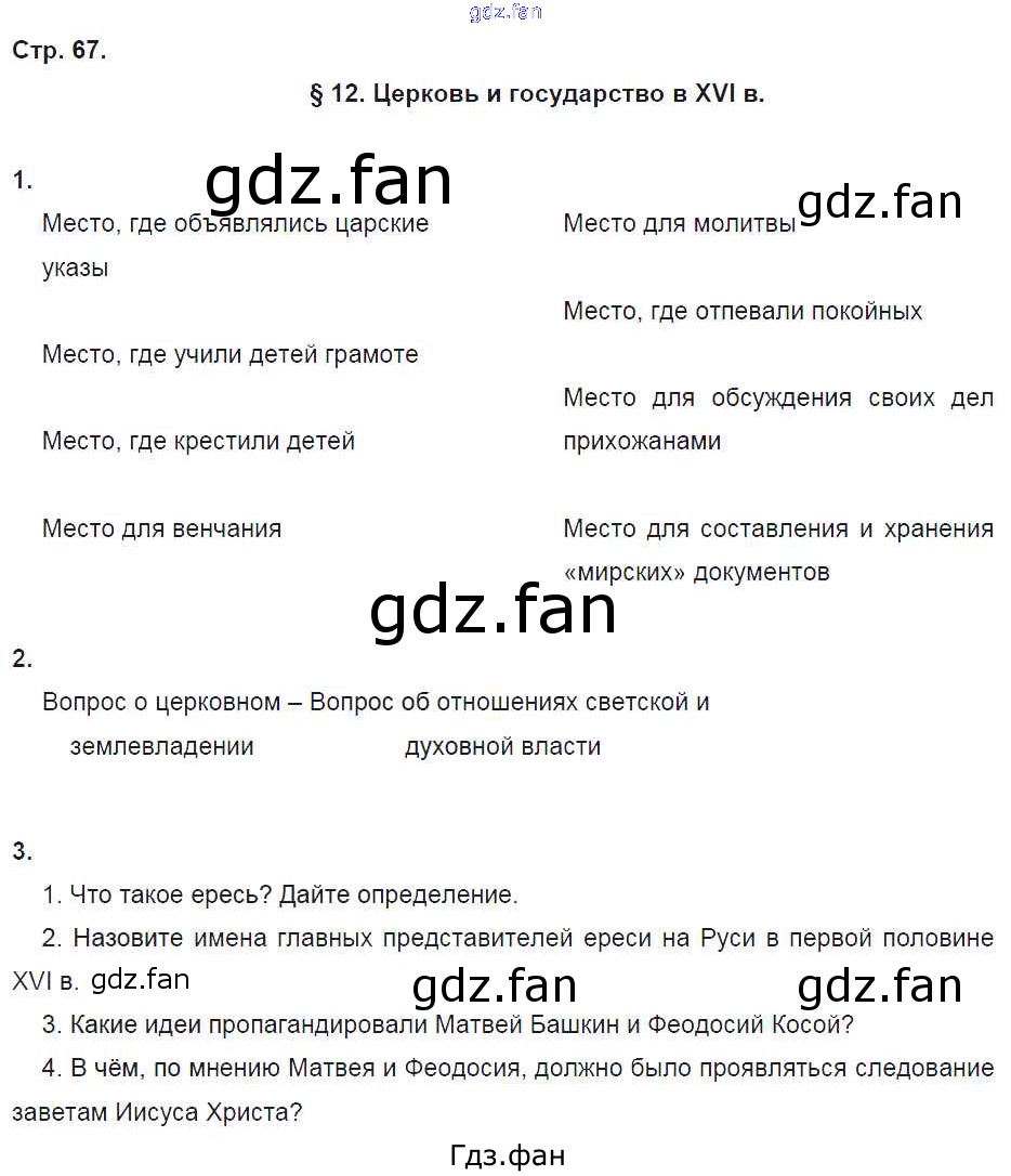 Проверка домашнего задания всегда занимает большое количество времени. На помощь приходит ГДЗ фан по Истории седьмого класса. Здесь собраны популярные ответы на 67 (§12. Церковь и государство в XVI в. № 1, 2, 3) История 7 класс рабочая тетрадь Чернова М.Н. (к уч. Торкунова А.В.)