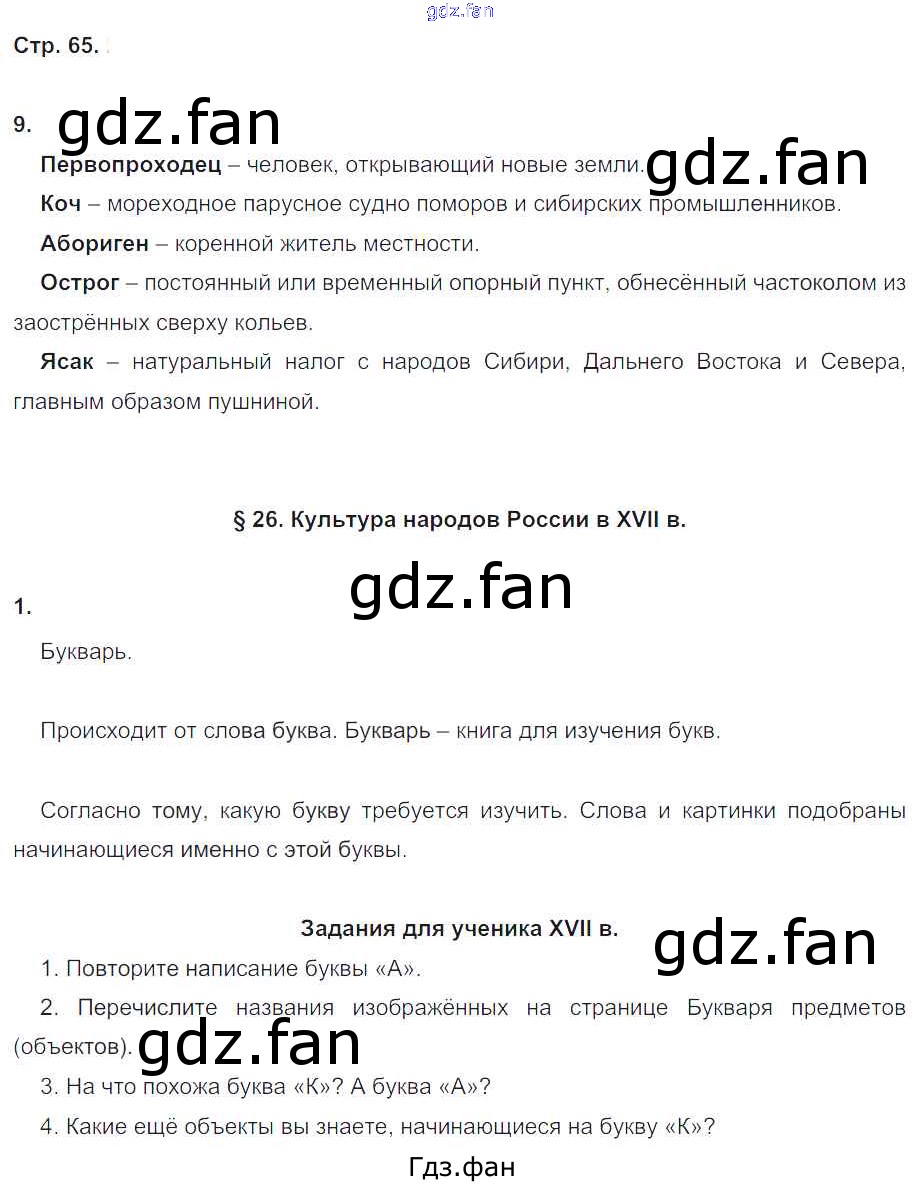 Проверка домашнего задания всегда занимает большое количество времени. На помощь приходит ГДЗ фан по Истории седьмого класса. Здесь собраны популярные ответы на 65 (№ 9. §26. Культура народов России в XVII в. № 1) История 7 класс рабочая тетрадь Чернова М.Н. (к уч. Торкунова А.В.)