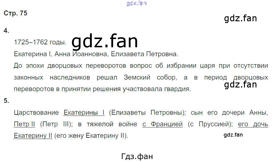Проверка домашнего задания всегда занимает большое количество времени. На помощь приходит ГДЗ фан по Истории седьмого класса. Здесь собраны популярные ответы на 75 (№ 4, 5) История 7 класс тетрадь-тренажёр Данилов А.А.