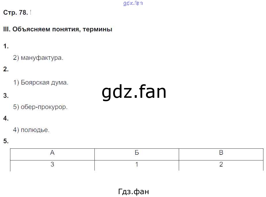 Проверка домашнего задания всегда занимает большое количество времени. На помощь приходит ГДЗ фан по Истории седьмого класса. Здесь собраны популярные ответы на 78 (Объясняем понятия, термины № 1, 2, 3, 4, 5) История 7 класс рабочая тетрадь. Универсальные учебные действия Гевуркова Е.А.