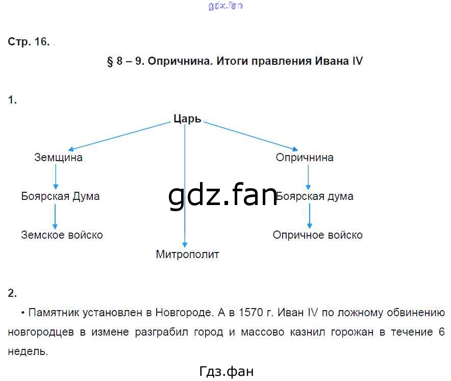Проверка домашнего задания всегда занимает большое количество времени. На помощь приходит ГДЗ фан по Истории седьмого класса. Здесь собраны популярные ответы на 16 (§ 8 - 9. Опричнина. Итоги правления Ивана IV № 1, 2) История 7 класс рабочая тетрадь Клоков В.А.