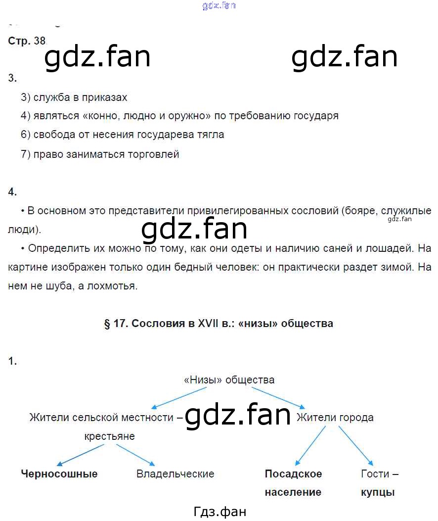 Проверка домашнего задания всегда занимает большое количество времени. На помощь приходит ГДЗ фан по Истории седьмого класса. Здесь собраны популярные ответы на 38 (№ 3, 4. §17. Сословия в XVII в.: «низы» общества № 1) История 7 класс рабочая тетрадь Клоков В.А.