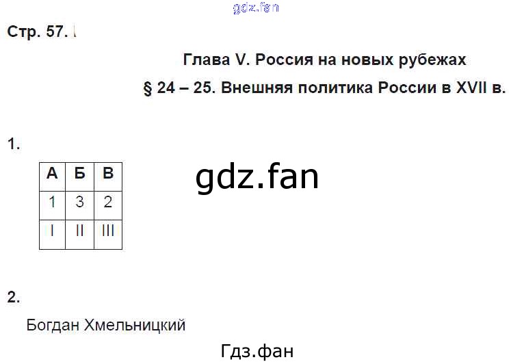 Проверка домашнего задания всегда занимает большое количество времени. На помощь приходит ГДЗ фан по Истории седьмого класса. Здесь собраны популярные ответы на 57 (§ 24 - 25. Внешняя политика России в XVII в № 1, 2) История 7 класс рабочая тетрадь Клоков В.А.