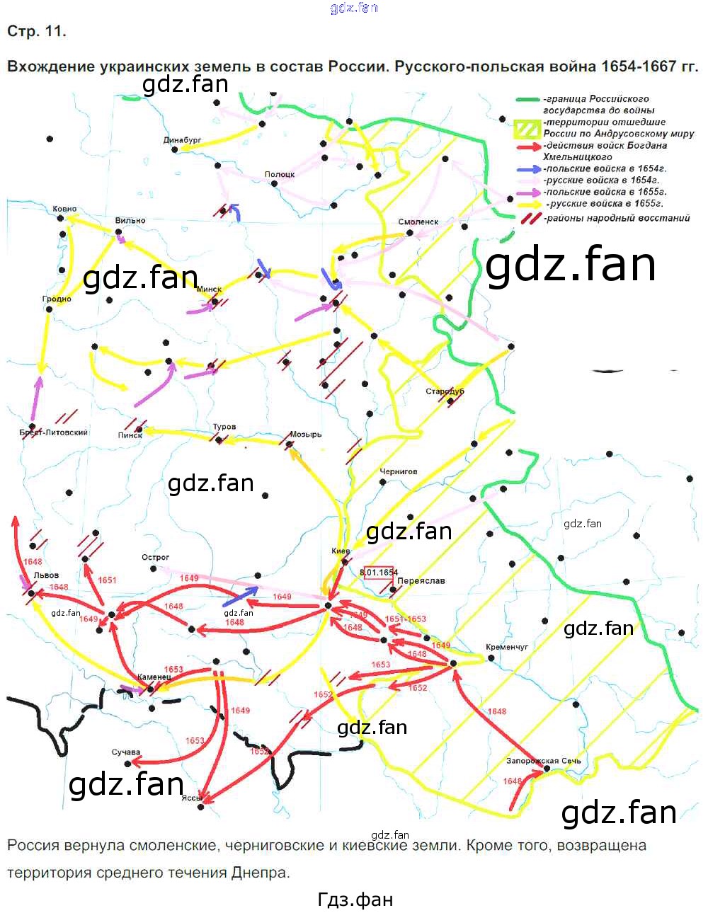 Проверка домашнего задания всегда занимает большое количество времени. На помощь приходит ГДЗ фан по Истории седьмого класса. Здесь собраны популярные ответы на 11 (Русско-польская война 1654-1667 гг.) История 7 класс контурные карты Тороп В.В.