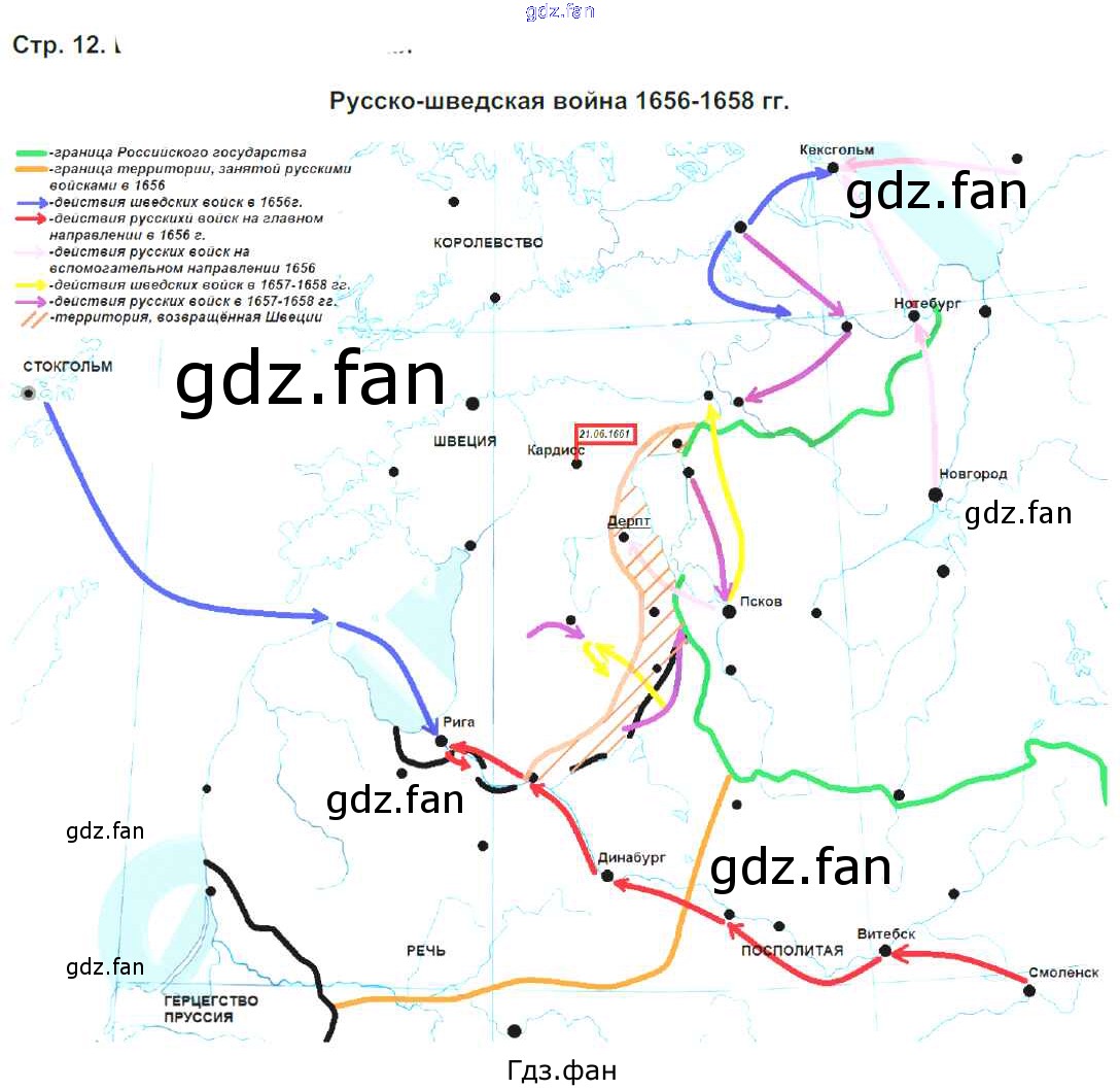 Проверка домашнего задания всегда занимает большое количество времени. На помощь приходит ГДЗ фан по Истории седьмого класса. Здесь собраны популярные ответы на 12 (Русско-шведская война 1656-1658 гг.) История 7 класс контурные карты Тороп В.В.
