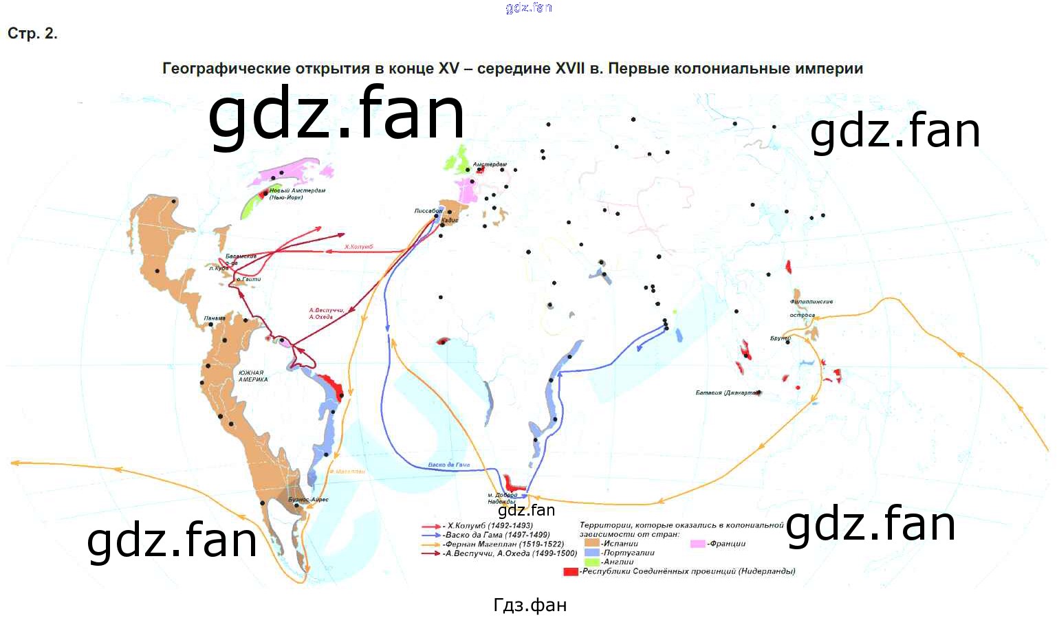 Проверка домашнего задания всегда занимает большое количество времени. На помощь приходит ГДЗ фан по Истории седьмого класса. Здесь собраны популярные ответы на 2 (Географические открытия в конце 15 - середине 17 в. Первые колониальные империи) История 7 класс контурные карты Курбский Н.А.
