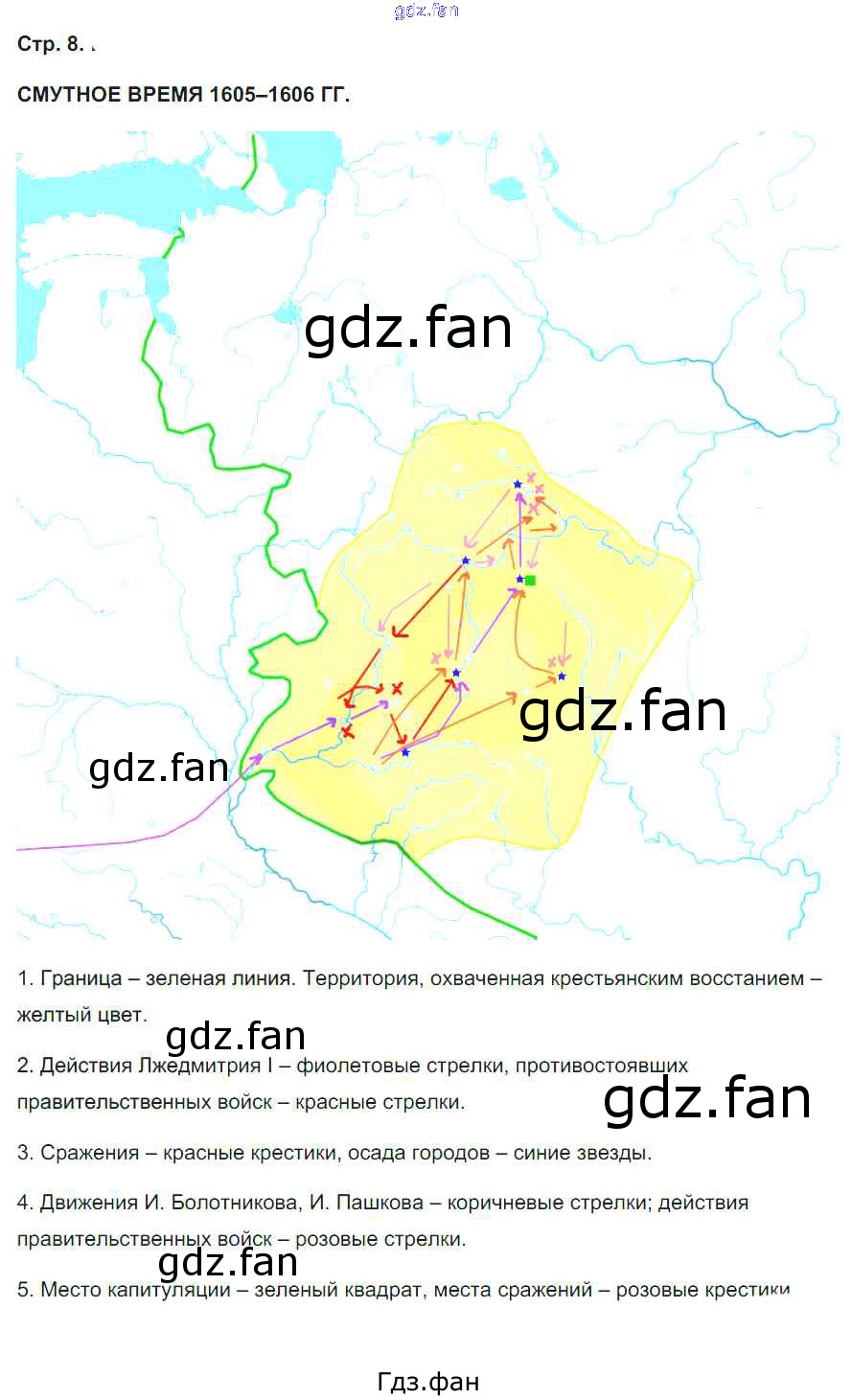 Проверка домашнего задания всегда занимает большое количество времени. На помощь приходит ГДЗ фан по Истории седьмого класса. Здесь собраны популярные ответы на 8 (Смутное время 1605-1606 гг.) История 7 класс контурные карты Лукин П.В.