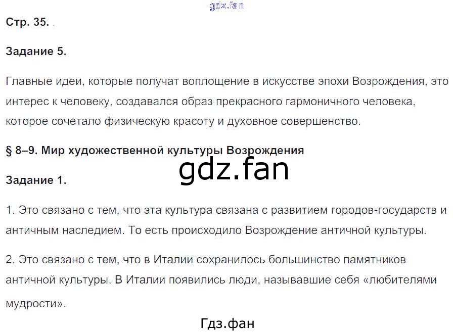 Проверка домашнего задания всегда занимает большое количество времени. На помощь приходит ГДЗ фан по Истории седьмого класса. Здесь собраны популярные ответы на 35 (№ 5. §8-9. Мир художественной культуры Возрождения № 1) История 7 класс рабочая тетрадь Румянцев В.А.