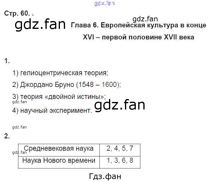 Проверка домашнего задания всегда занимает большое количество времени. На помощь приходит ГДЗ фан по Истории седьмого класса. Здесь собраны популярные ответы на 60 (Глава 6. Европейская культура в конце 16 — первой половине 17 века № 1, 2) История 7 класс рабочая тетрадь Стецюра Т.Д.