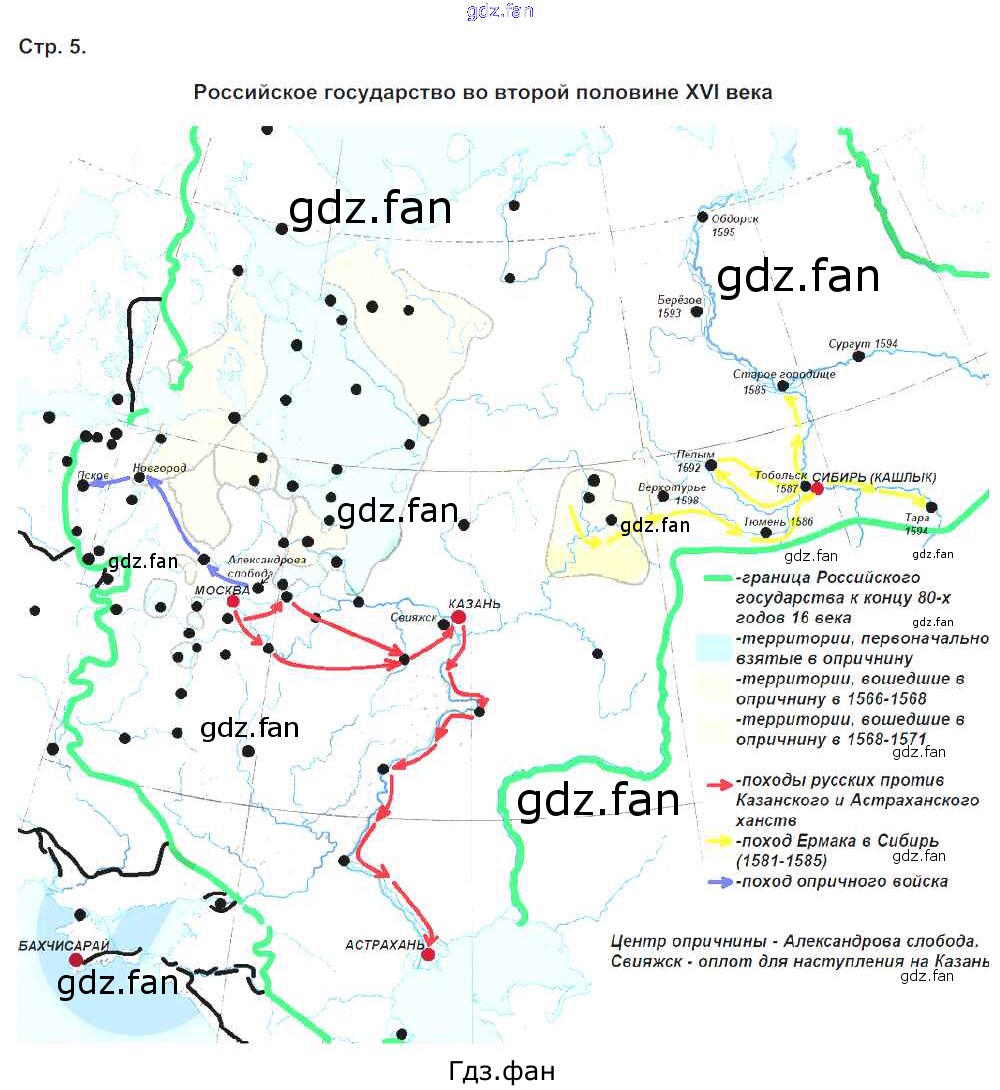 Проверка домашнего задания всегда занимает большое количество времени. На помощь приходит ГДЗ фан по Истории седьмого класса. Здесь собраны популярные ответы на 5 (Российское государство во второй половине 16 века) История 7 класс контурные карты Тороп В.В.