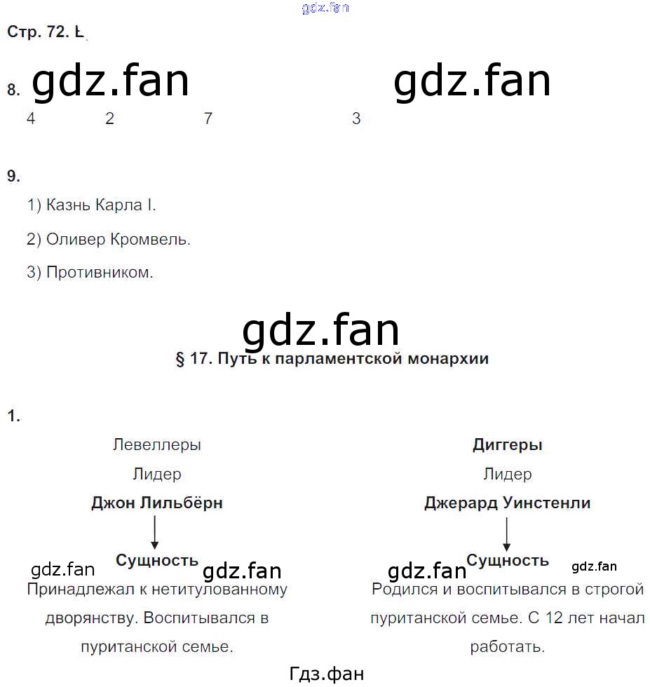 Проверка домашнего задания всегда занимает большое количество времени. На помощь приходит ГДЗ фан по Истории седьмого класса. Здесь собраны популярные ответы на 72 (№ 8, 9. §17. Путь к парламентской монархии № 1) История 7 класс рабочая тетрадь Юдовская А.Я.