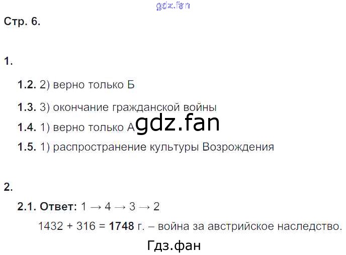 Проверка домашнего задания всегда занимает большое количество времени. На помощь приходит ГДЗ фан по Истории седьмого класса. Здесь собраны популярные ответы на 6 (№ 1.2-1.5, 2.1) История 7 класс рабочая тетрадь Юдовская А.Я.