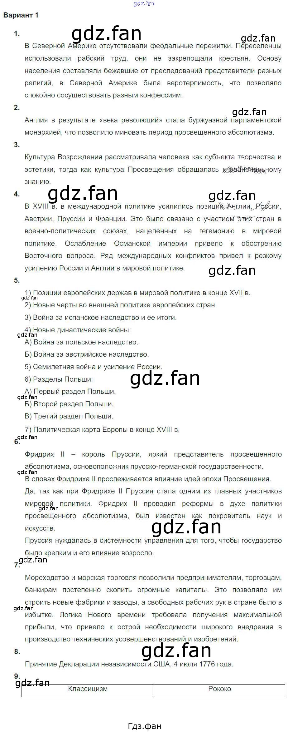 ГДЗ - онлайн ответы на Вариант 1. №1-9 История для 7 класса к Тетради-экзаменатору Сферы Уколова 2017