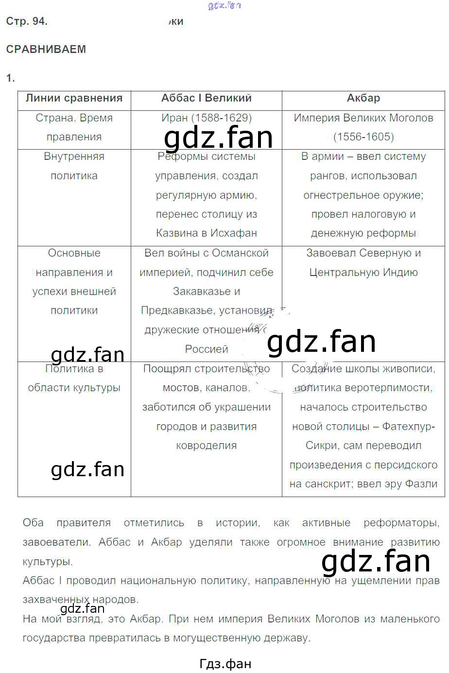 Проверка домашнего задания всегда занимает большое количество времени. На помощь приходит ГДЗ фан по Истории седьмого класса. Здесь собраны популярные ответы на 94 (Сравниваем № 1) История 7 класс тетрадь-тренажёр Ведюшкин В.А.