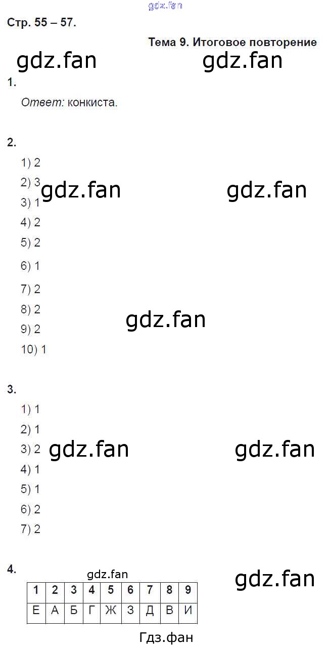 Проверка домашнего задания всегда занимает большое количество времени. На помощь приходит ГДЗ фан по Истории седьмого класса. Здесь собраны популярные ответы на 55-57 (Тема 9. Итоговое повторение № 1, 2, 3, 4) История 7 класс рабочая тетрадь с контурными картами Волкова Е.В.