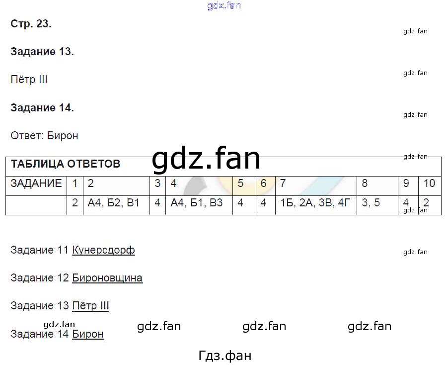 Проверка домашнего задания всегда занимает большое количество времени. На помощь приходит ГДЗ фан по Истории восьмого класса. Здесь собраны популярные ответы на 23 (№ 13, 14) История 8 класс контрольные работы Артасов И.А.