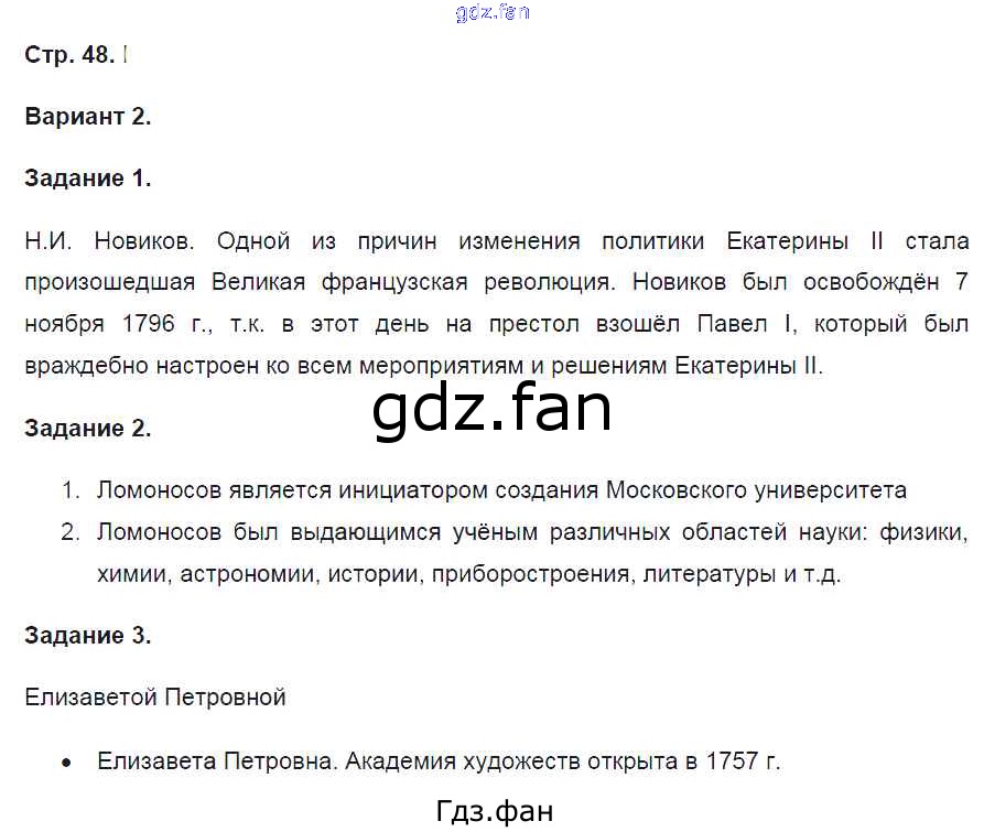 Проверка домашнего задания всегда занимает большое количество времени. На помощь приходит ГДЗ фан по Истории восьмого класса. Здесь собраны популярные ответы на 48 (Вариант 2 № 1, 2, 3) История 8 класс контрольные работы Артасов И.А.