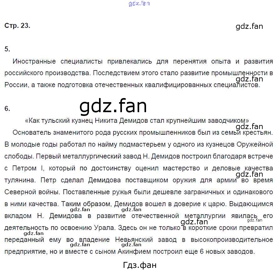 Проверка домашнего задания всегда занимает большое количество времени. На помощь приходит ГДЗ фан по Истории восьмого класса. Здесь собраны популярные ответы на 23 (№ 5, 6) История 8 класс рабочая тетрадь Артасов И.А.