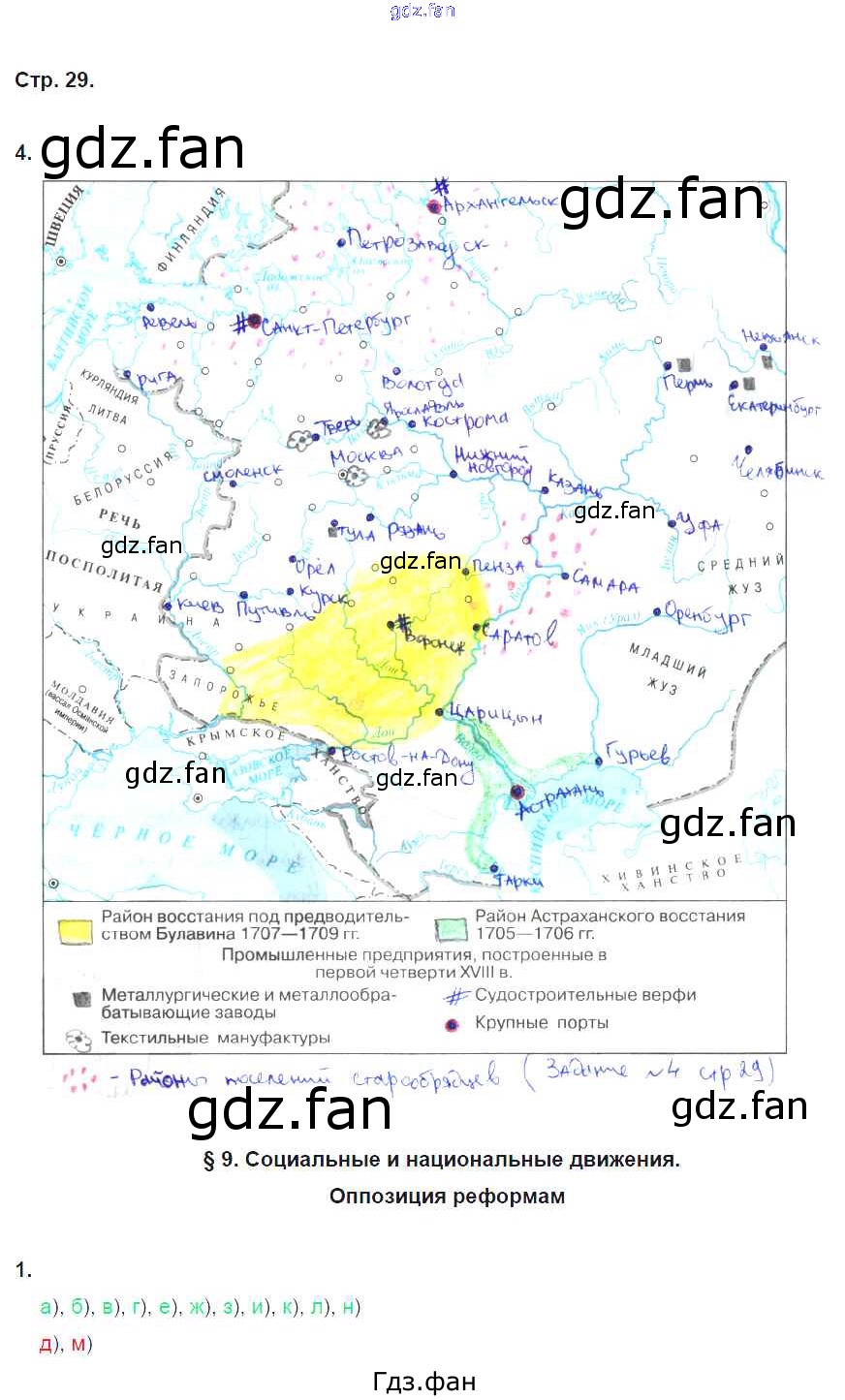 Проверка домашнего задания всегда занимает большое количество времени. На помощь приходит ГДЗ фан по Истории восьмого класса. Здесь собраны популярные ответы на 29 (№ 4. §9. Социальные и национальные движения. Оппозиция реформам № 1) История 8 класс рабочая тетрадь Артасов И.А.