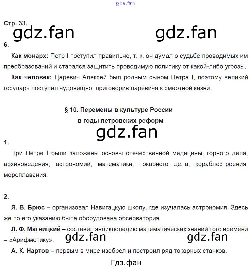 Проверка домашнего задания всегда занимает большое количество времени. На помощь приходит ГДЗ фан по Истории восьмого класса. Здесь собраны популярные ответы на 33 (№ 6. §10. Перемены в культуре России в годы петровских реформ № 1, 2) История 8 класс рабочая тетрадь Артасов И.А.