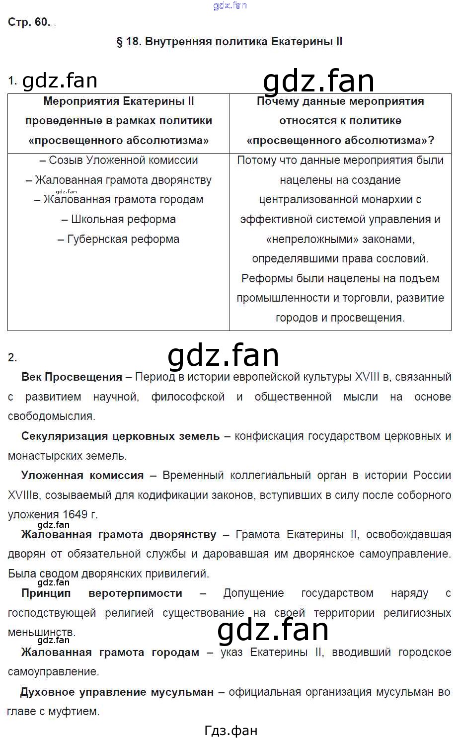 Проверка домашнего задания всегда занимает большое количество времени. На помощь приходит ГДЗ фан по Истории восьмого класса. Здесь собраны популярные ответы на 60 (§18. Внутренняя политика Екатерины II № 1, 2) История 8 класс рабочая тетрадь Артасов И.А.
