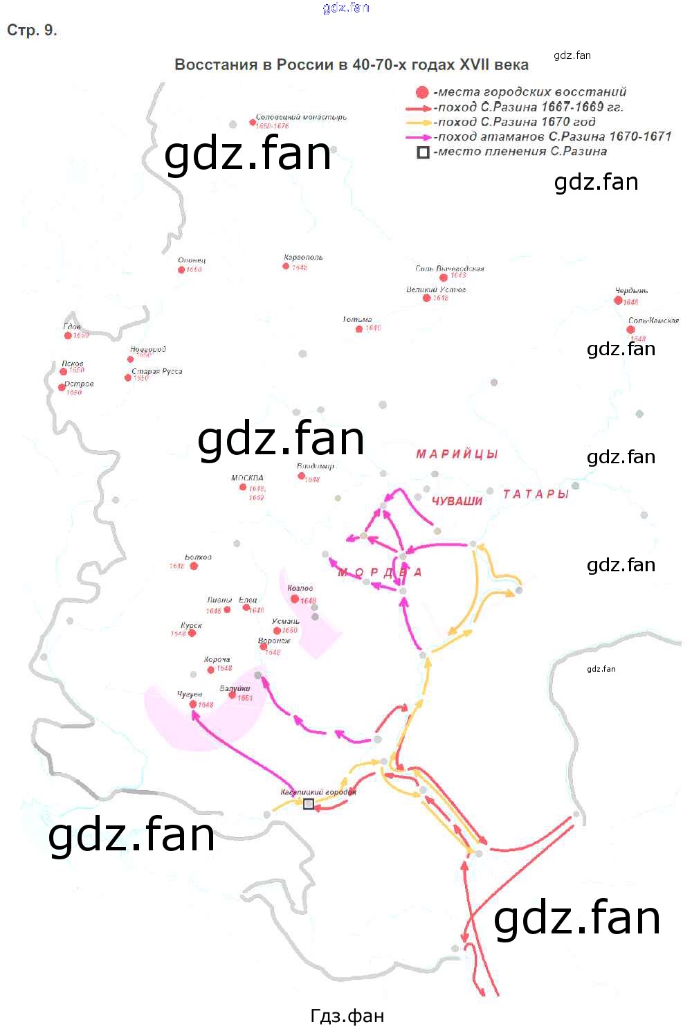 Проверка домашнего задания всегда занимает большое количество времени. На помощь приходит ГДЗ фан по Истории восьмого класса. Здесь собраны популярные ответы на 9 (Восстания в России в 40-70 годах 17 века) История 8 класс атлас Чугунова Н.Н.