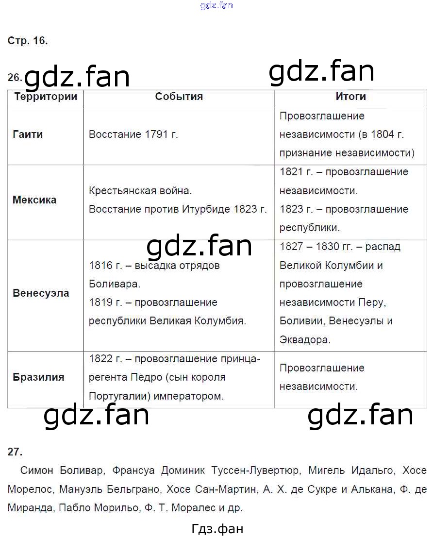 Проверка домашнего задания всегда занимает большое количество времени. На помощь приходит ГДЗ фан по Истории восьмого класса. Здесь собраны популярные ответы на 16 (№ 26, 27) Всеобщая История 8 класс рабочая тетрадь Ермакова И.А. (к уч. Загладина Н.В.)