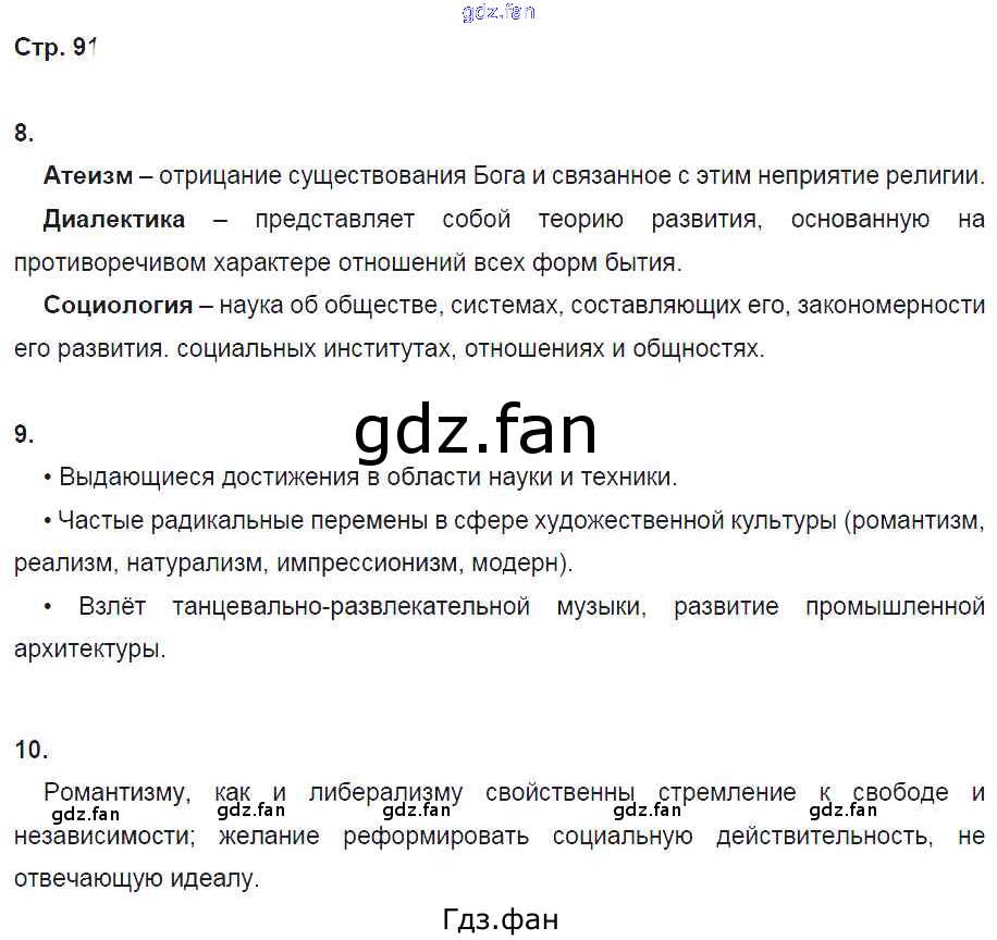 Проверка домашнего задания всегда занимает большое количество времени. На помощь приходит ГДЗ фан по Истории восьмого класса. Здесь собраны популярные ответы на 91 (№ 8, 9, 10) Всеобщая История 8 класс рабочая тетрадь Ермакова И.А. (к уч. Загладина Н.В.)