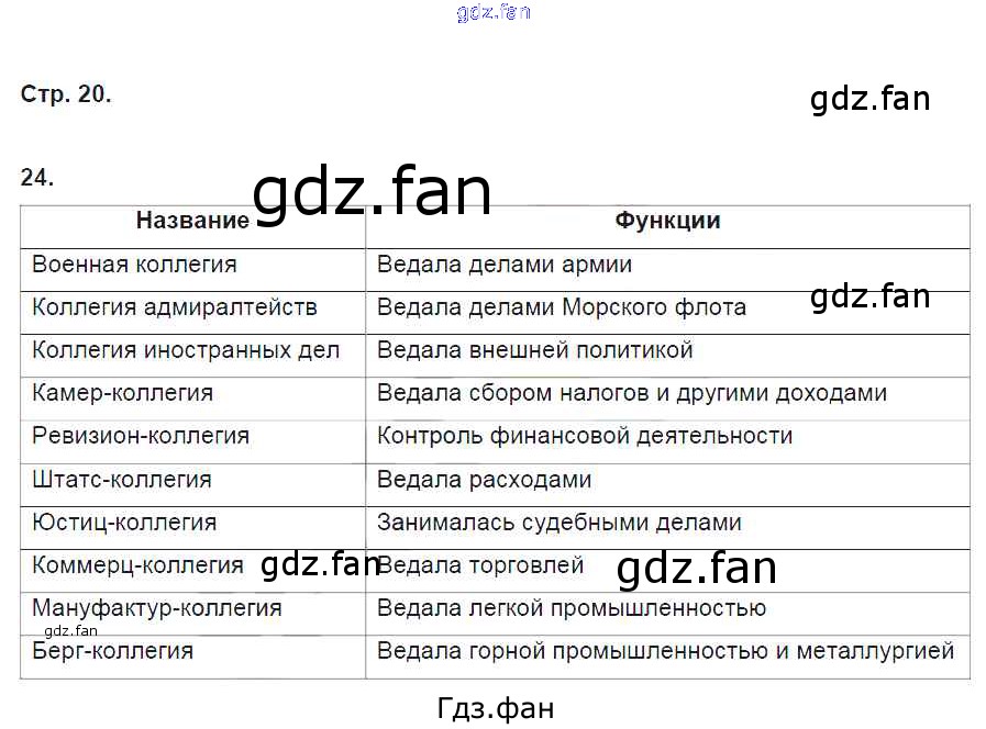 Проверка домашнего задания всегда занимает большое количество времени. На помощь приходит ГДЗ фан по Истории восьмого класса. Здесь собраны популярные ответы на 20 (№ 24) История России 8 класс рабочая тетрадь Кочегаров К.А.