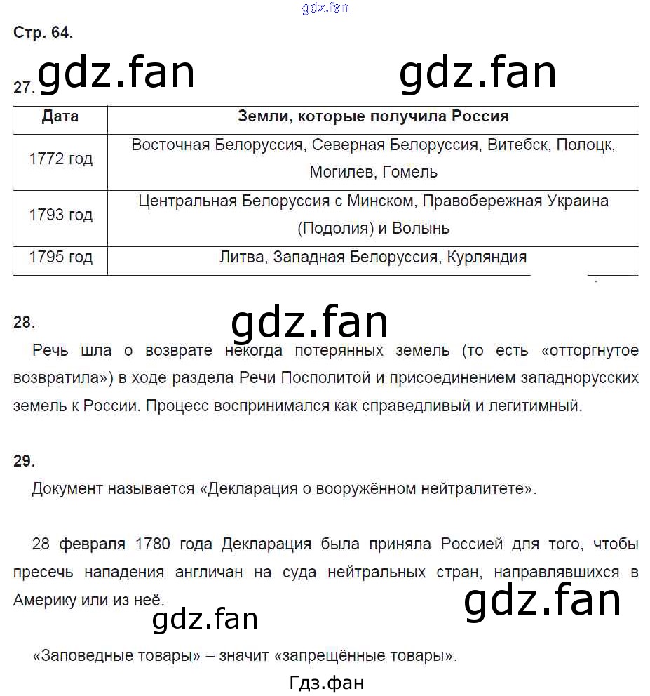 Проверка домашнего задания всегда занимает большое количество времени. На помощь приходит ГДЗ фан по Истории восьмого класса. Здесь собраны популярные ответы на 64 (№ 27, 28, 29) История России 8 класс рабочая тетрадь Кочегаров К.А.