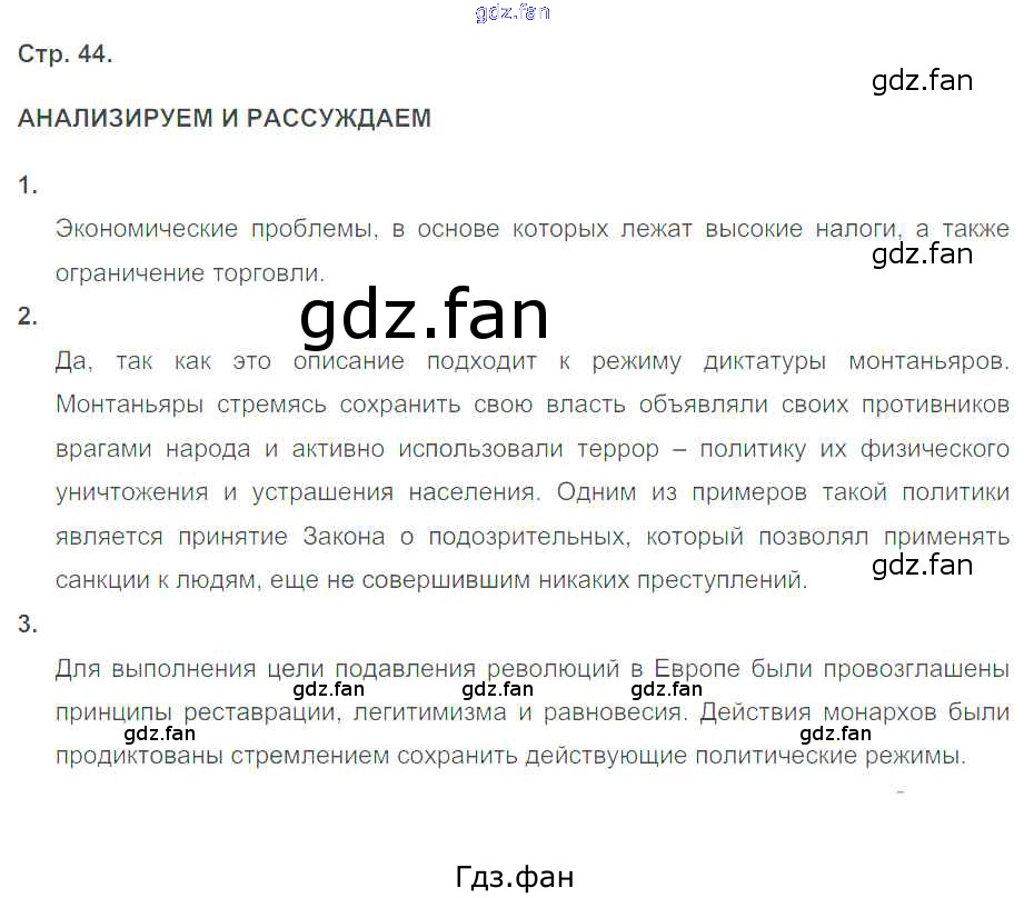 Проверка домашнего задания всегда занимает большое количество времени. На помощь приходит ГДЗ фан по Истории восьмого класса. Здесь собраны популярные ответы на 44 (Анализируем и рассуждаем № 1, 2, 3) История 8 класс тетрадь-тренажёр Лазарева А.В.