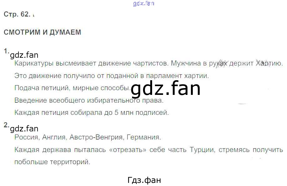Проверка домашнего задания всегда занимает большое количество времени. На помощь приходит ГДЗ фан по Истории восьмого класса. Здесь собраны популярные ответы на 62 (Смотрим и думаем № 1, 2) История 8 класс тетрадь-тренажёр Лазарева А.В.