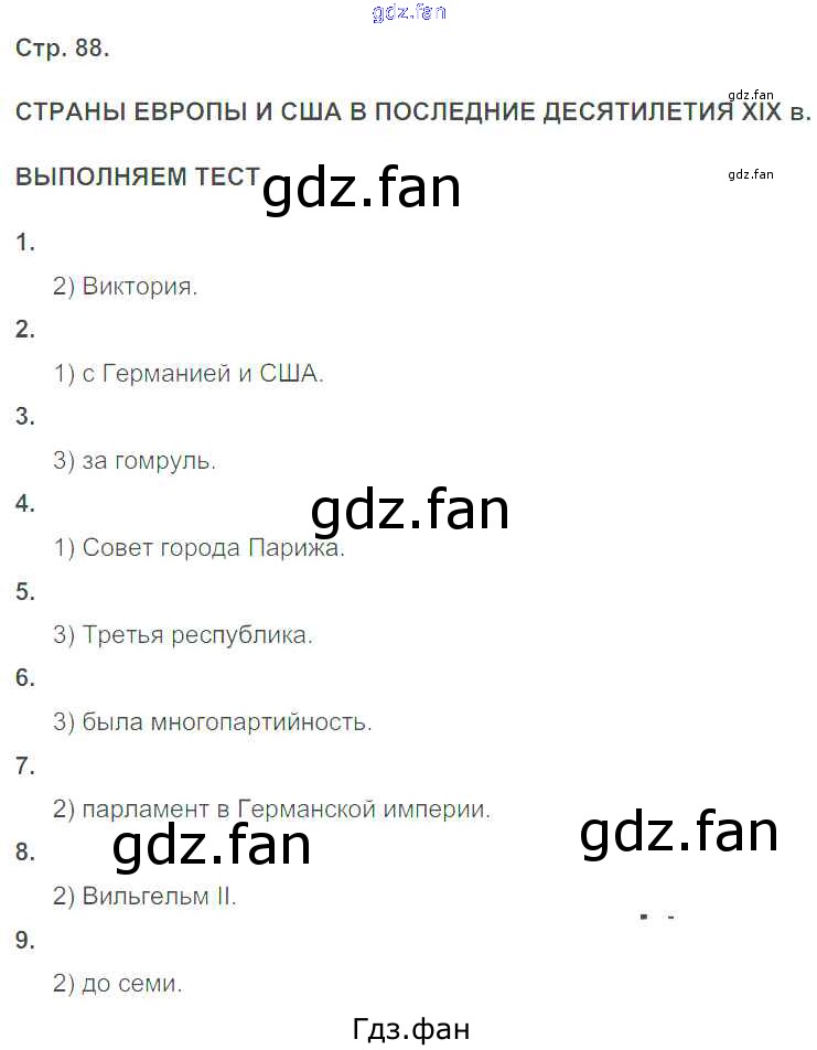 Проверка домашнего задания всегда занимает большое количество времени. На помощь приходит ГДЗ фан по Истории восьмого класса. Здесь собраны популярные ответы на 88 (Страны Европы и США в последние десятилетия XIX в. Выполняем тест № 1, 2, 3, 4, 5, 6, 7, 8, 9) История 8 класс тетрадь-тренажёр Лазарева А.В.