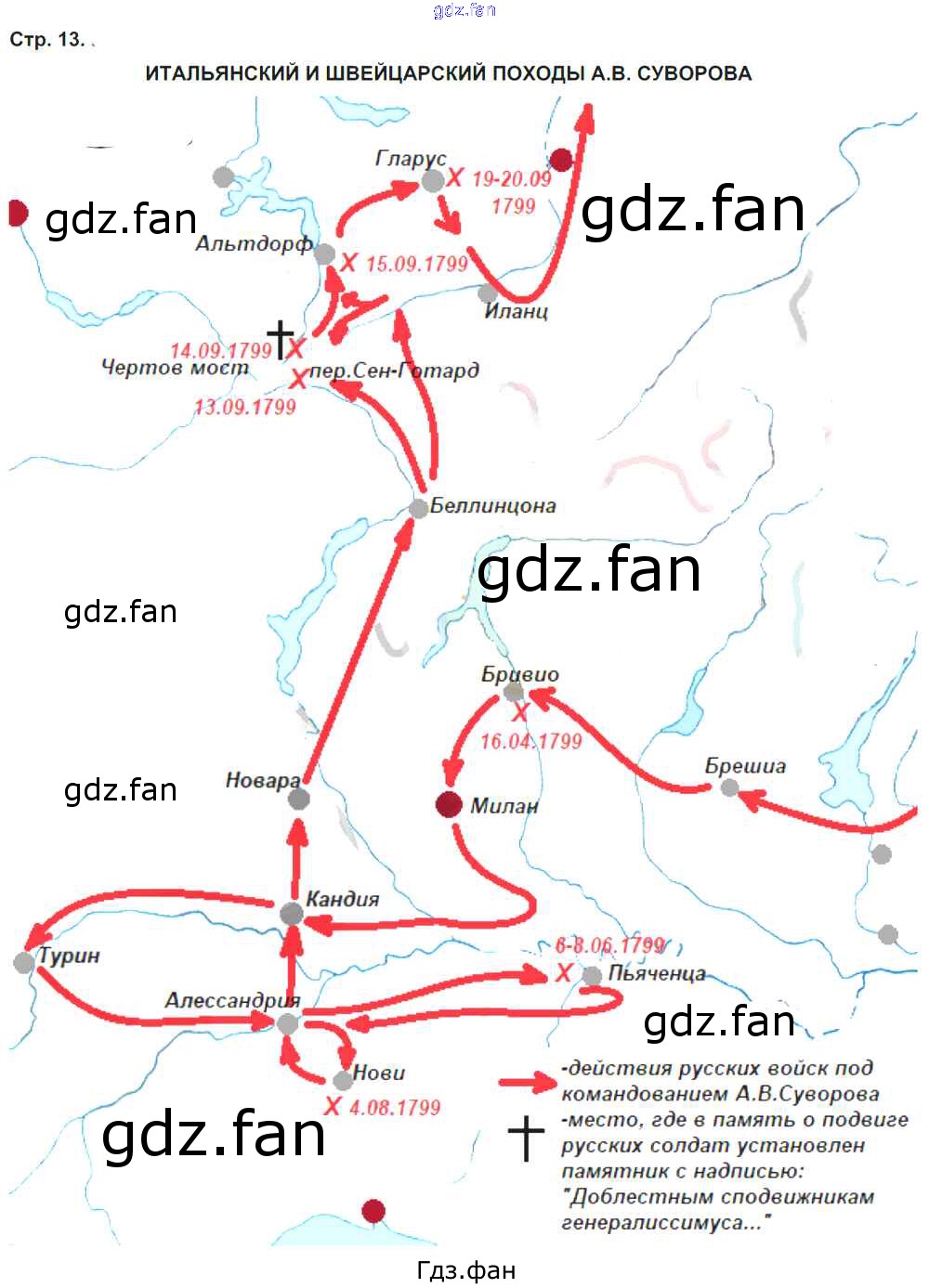 Проверка домашнего задания всегда занимает большое количество времени. На помощь приходит ГДЗ фан по Истории восьмого класса. Здесь собраны популярные ответы на 13 (итальянский и швейцарский походы А.В. Суворова) История России 8 класс контурные карты Тороп В.В.