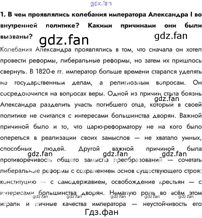 ГДЗ - онлайн ответы на 1 (стр. 44) История для 9 класса к Учебнику Арсентьев, Данилов 2016